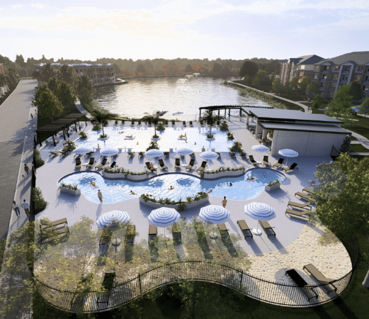 Recreational lake with surrounding walking trails